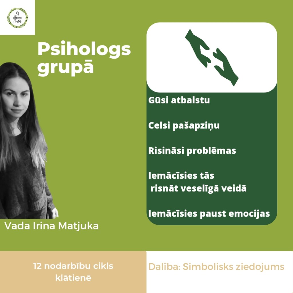 Pieejamas pirmās bezmaksas grulu nodarbības! Kā arī individuālu terapijunjau uzsāk 5 cilvēki! Iespējams pieteiktie rindā. Bezmaksas pakalpojums pieejams priekšrokundodot riska grupai 19-35g un atbilstoši noliktajiem kritērijiem. Droši uzzini vairāk!